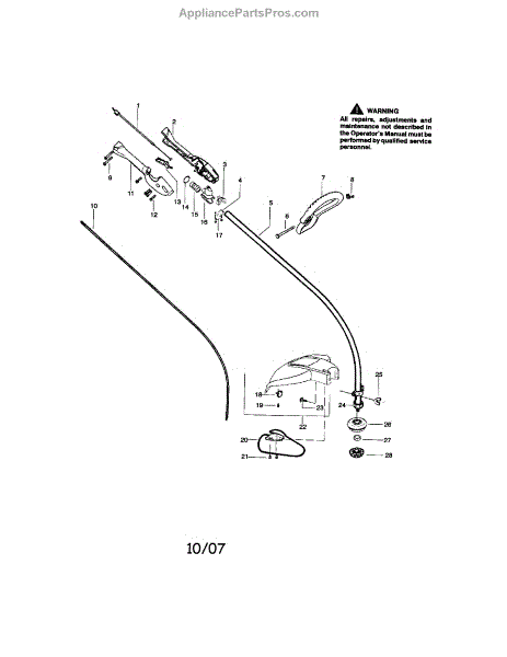 This is a cap assembly designed for gas string trimmers. The cap assembly is installed at the base of the trimmer's drive shaft, over the spool real. It is responsible for the advancement of the trimmer line in the spool when hit against the ground and also serves to protect the spooled trimmer line from dust and debris. The cap is made of durable plastic and is meant to absorb shock from the ground. However, over time, the threads on the cap's interior may become worn out. Blows from hard surfaces like asphalt and concrete may cause the cap to weaken and even break. A cap that fails to remain in place or is significantly damaged needs to be replaced.The installation of a new cap assembly is easy. First, remove the old cap assembly. The use of an adjustable wrench or vice grips might be necessary depending on the old cap's threading. Once the old cap is removed, then simply screw the new one on, making sure it firmly fastened.This is an OEM part sourced directly from the manufacturer. It is sold individually. The cap assembly is compatible with Craftsman and Husqvarna trimmer models.