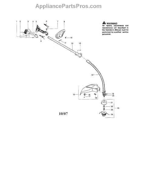 The lower shaft replacement is used for lawn and garden equipment such as trimmers, gas trimmers, and pruners. The shaft is the part that will hold the spool used on these types of equipment. It also connects to the upper shaft.Some of the common problems with the lower drive shaft include worn drive shaft ends, worn bushing, breaks along the metal, or damage to the outer tube. Owners should replace the lower shaft before they use the machine. Continuing to use a trimmer with a broken lower shaft is dangerous and could result in injury or more damage to the machine. The replacement of the lower shaft is relatively simple and will require only a few tools.The replacement part works with certain models of trimmer and pruner from Husqvarna, Weed Eater, and Poulan. This is a genuine OEM replacement part sourced from the manufacturer. The kit is sold individually.