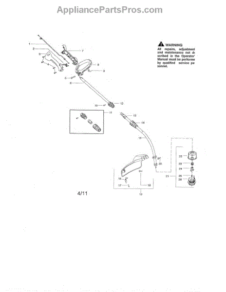 This is a trimmer lower shaft assembly kit that is used for certain trimmer models from select brands. The part will connect the upper shaft and the cutting head of the trimmer. If it is not working correctly or has been damaged, it will be impossible to use the machine, as it may not provide a proper connection. Replace it right away if this occurs.The assembly is made from metal and is durable. However, it could wear down over time and no longer connect properly. It could also become damaged if the trimmer is dropped or knocked over, for example. Because it is made from metal, there is also a chance that it could start to corrode. The piece is easy to replace and will only require a screwdriver.The trimmer lower shaft assembly kit will work with select models of trimmers from Weed Eater. The kit is sold individually and includes the collet nut, collar shaft, and tube. It is a genuine OEM replacement part sourced from the manufacturer.