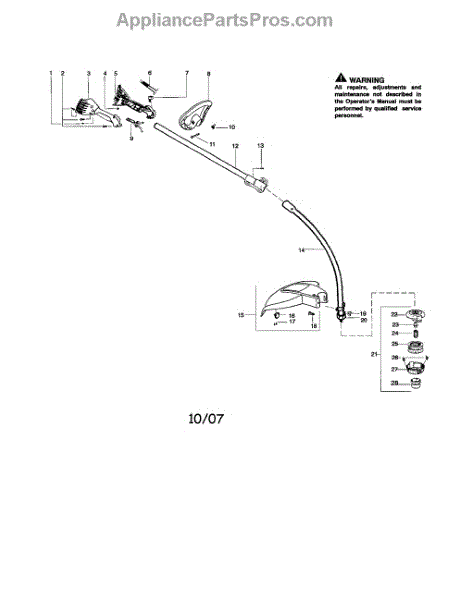 All gasoline-powered trimmers must have throttle controls that increase the amount of gasoline flowing into the carburetor. As the amount of fuel increases and the engine revolutions increase, the clutch engages the spool and the trimming line begins to turn. The throttle trigger assembly is quite durable. However, it has several appendages and is required to be under constant pressure when in use. If any of the design parts fail, the trigger unit must be replaced or the trimmer cannot be used. To replace the throttle trigger, open the housing and disconnect the throttle cable from the old trigger. It's easy to see where the new trigger will fit in the housing because the screw holes will line up perfectly with the holes in the new throttle trigger. The throttle cable will fit into one slot on the new trigger and a spring opposite the slot will hold the trigger unit at the proper angle as the housing is replaced. This new throttle trigger is an OEM replacement part, made to the same exacting specification as the original. This throttle control is designed by Craftsman and used on most of their trimmers. It is also compatible with a few other manufacturers' trimmers, including Poulan and Husqvarna.