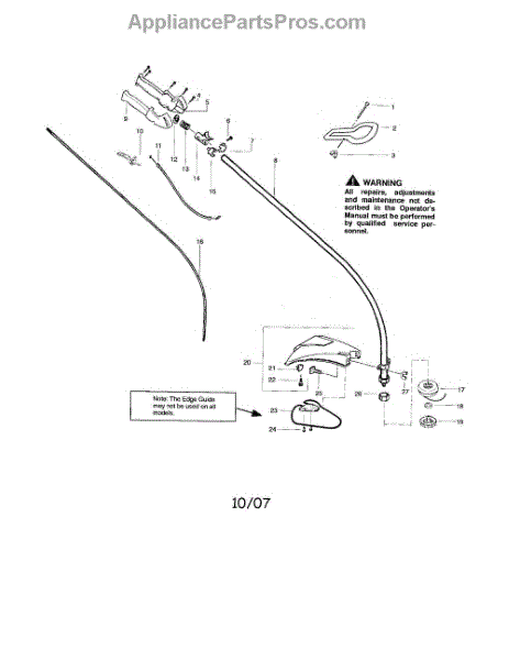 This is a cap assembly designed for gas string trimmers. The cap assembly is installed at the base of the trimmer's drive shaft, over the spool real. It is responsible for the advancement of the trimmer line in the spool when hit against the ground and also serves to protect the spooled trimmer line from dust and debris. The cap is made of durable plastic and is meant to absorb shock from the ground. However, over time, the threads on the cap's interior may become worn out. Blows from hard surfaces like asphalt and concrete may cause the cap to weaken and even break. A cap that fails to remain in place or is significantly damaged needs to be replaced.The installation of a new cap assembly is easy. First, remove the old cap assembly. The use of an adjustable wrench or vice grips might be necessary depending on the old cap's threading. Once the old cap is removed, then simply screw the new one on, making sure it firmly fastened.This is an OEM part sourced directly from the manufacturer. It is sold individually. The cap assembly is compatible with Craftsman and Husqvarna trimmer models.