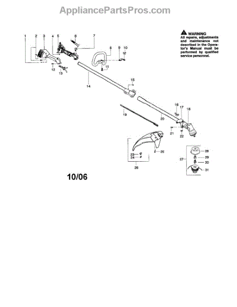 All gasoline-powered trimmers must have throttle controls that increase the amount of gasoline flowing into the carburetor. As the amount of fuel increases and the engine revolutions increase, the clutch engages the spool and the trimming line begins to turn. The throttle trigger assembly is quite durable. However, it has several appendages and is required to be under constant pressure when in use. If any of the design parts fail, the trigger unit must be replaced or the trimmer cannot be used. To replace the throttle trigger, open the housing and disconnect the throttle cable from the old trigger. It's easy to see where the new trigger will fit in the housing because the screw holes will line up perfectly with the holes in the new throttle trigger. The throttle cable will fit into one slot on the new trigger and a spring opposite the slot will hold the trigger unit at the proper angle as the housing is replaced. This new throttle trigger is an OEM replacement part, made to the same exacting specification as the original. This throttle control is designed by Craftsman and used on most of their trimmers. It is also compatible with a few other manufacturers' trimmers, including Poulan and Husqvarna.