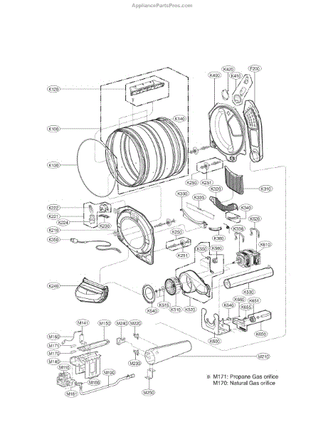 The Liquid Propane Gas Orifice is an OEM replacement part for LG dryers. This orifice is specifically designed for models that run on liquid propane gas. It regulates the flow of gas into the burner, allowing the dryer to heat up and dry your clothes. Causes of a faulty orifice can include corrosion from repeated heating cycles breaking down internal components. Orifices degrade naturally over extended use. Symptoms of a failed orifice include: