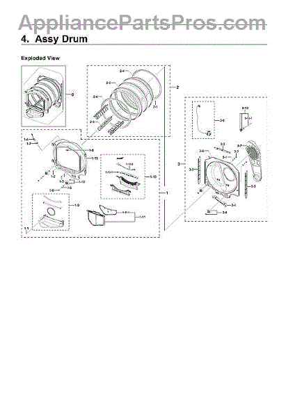 The Drum Assembly is an OEM replacement part for Samsung electric dryers. It is the core component that rotates clothing during tumble drying cycles.
