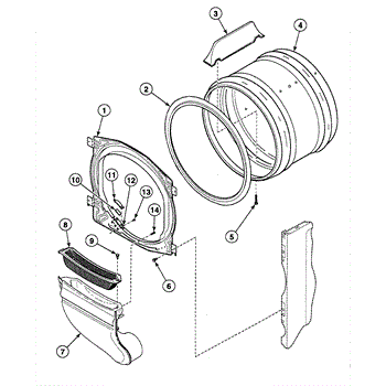 This front bulkhead assembly forms the dryer's front drum support and air seal. Replacing a worn or damaged bulkhead restores smooth drum rotation, reduces noise, and helps maintain proper airflow for consistent drying performance.