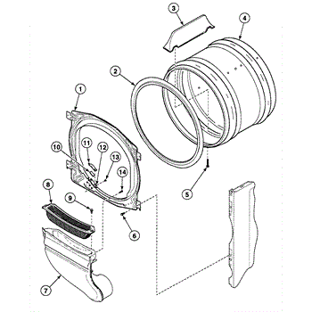 This front bulkhead assembly forms the dryer's front drum support and air seal. Replacing a worn or damaged bulkhead restores smooth drum rotation, reduces noise, and helps maintain proper airflow for consistent drying performance.