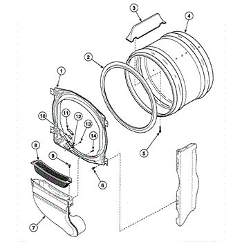 This front bulkhead assembly forms the dryer's front drum support and air seal. Replacing a worn or damaged bulkhead restores smooth drum rotation, reduces noise, and helps maintain proper airflow for consistent drying performance.