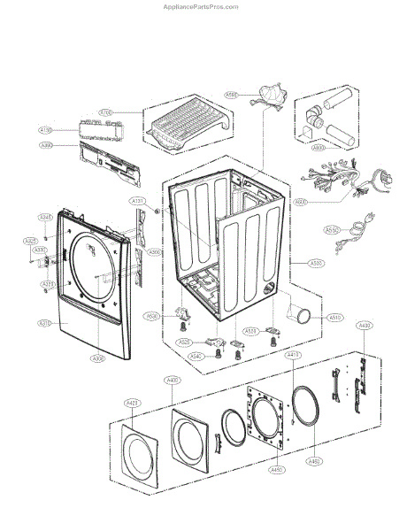 This duct assembly channels airflow inside the appliance to guide exhaust and internal air between components. Replacing a damaged or obstructed duct helps restore proper airflow and can reduce poor performance or long cycles. What it does: