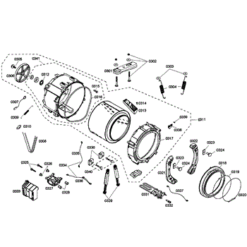 The Tank Spring is an OEM part for Bosch washing machines. It is located within the central support assembly below the washer tub. The spring provides counterbalancing tension to assist the tub during movement and rotation.