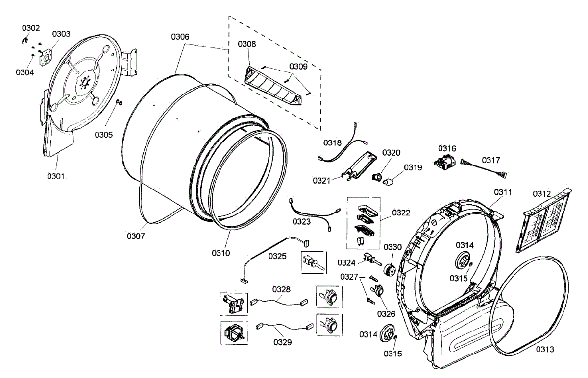 Internal wiring harness for dryers. Connects electrical components throughout the unit. Replace if wires are frayed, connections are loose, or harness is damaged.