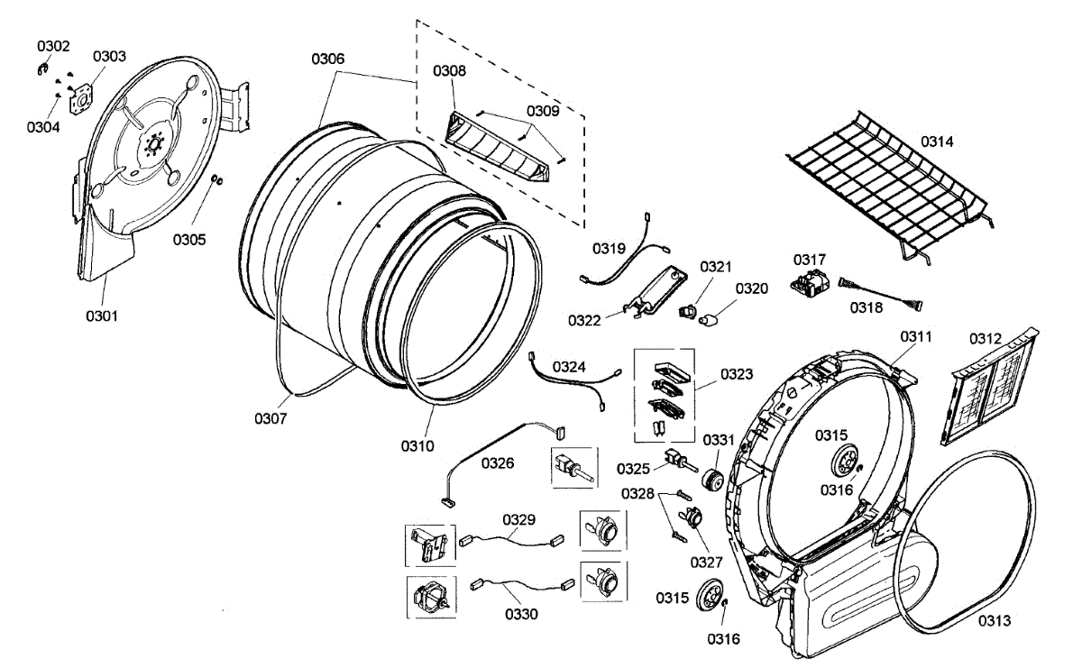 Internal wiring harness for dryers. Connects electrical components throughout the unit. Replace if wires are frayed, connections are loose, or harness is damaged.