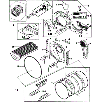 The Drum Assembly is an OEM replacement part for Samsung electric dryers. It is the core component that rotates clothing during tumble drying cycles.