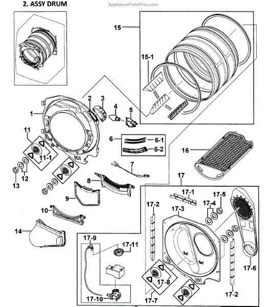 Parts for Samsung DV338AEB/XAA-00: Drum Assy Parts