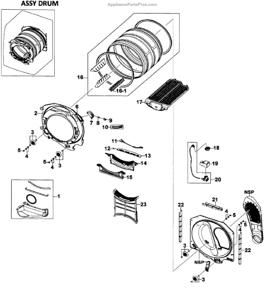 Parts for Samsung DV520AEW/XAA-0001: Drum Assy Parts