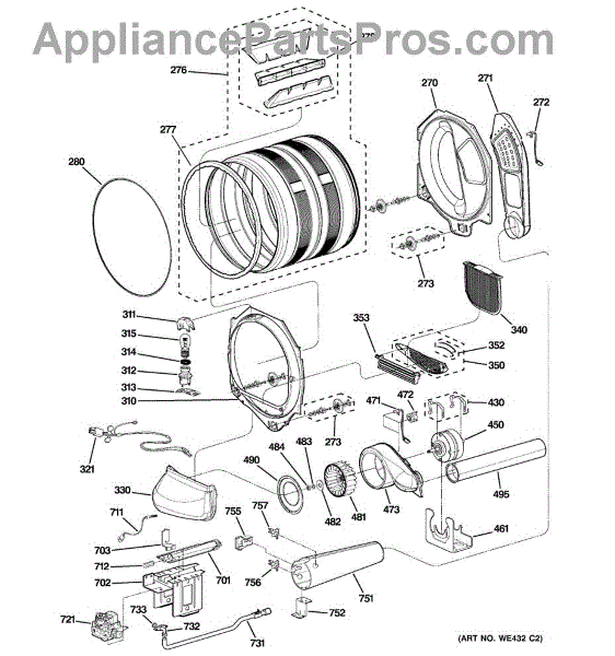 This genuine replacement OEM part is a motor blower assembly for dryers. The motor assembly is the main motor of the dryer that allows the dryer to spin and perform its essential functions. If the dryer is no longer turning on, spinning, or drying properly, it might be time to replace the blower motor. While this might seem like a big job, it's a relatively simple repair. To replace the blower motor assembly on the dryer, start by removing the front panel of the dryer. After removing set off the side to gain access to the back of the dryer. Locate the screws that cover the back panel at the back of the dryer drum. Remove the screws to gain access to the blower motor. Once located, remove the mounting brackets that attach the motor to the back of the dryer. Replace the old blower motor with the new, and reinstall the panels.This replacement part is sold individually by the manufacturer and is compatible with General Electric, Hotpoint, RCA, and Sears/Kenmore brand appliances.