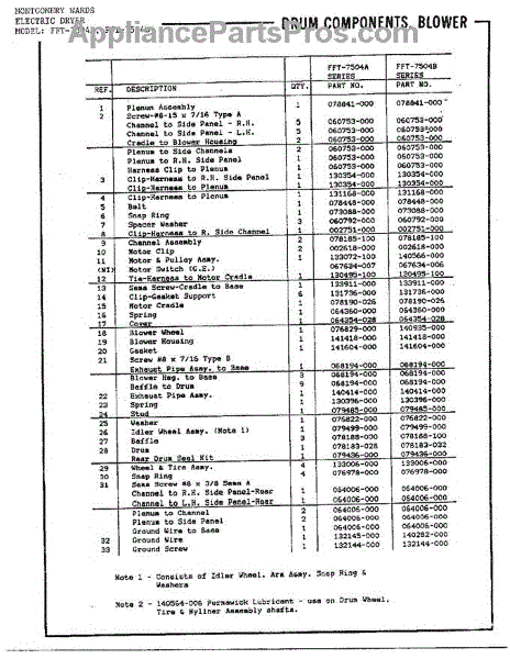 Parts for Frigidaire 7504B: Drum Components / Blower Page 2 Parts