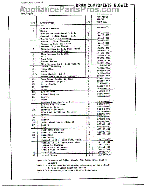 Parts for Frigidaire 7506A: Drum Components, Blower Page 2 Parts
