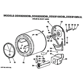 Parts for Ge DDE8100DBL: Drum And Duct Assembly Parts