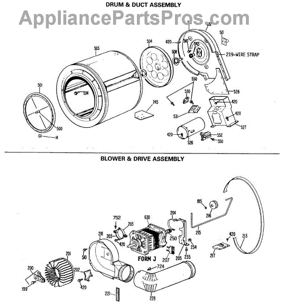 Parts for Ge DDG5180RBL: 03 - Drum & Duct Assembly Parts