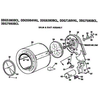 Parts for Ge DDG5380BCL: Drum And Duct Assembly Parts