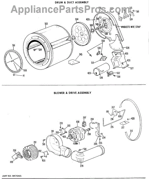 The Blower Wheel is an OEM replacement part for GE dryers. It has a role in the air circulation within the dryer, aiding in the even and efficient drying of clothes. The blower wheel, connected to the motor, helps in expelling the moist air out of the dryer through the exhaust vent during the drying cycle. Causes of a malfunctioning blower wheel are typically wear and tear from regular use, the accumulation of lint or debris, or damage to the wheel’s fins or central hub, which can impact its rotation and air circulation capability. Symptoms of a bad Blower Wheel include: