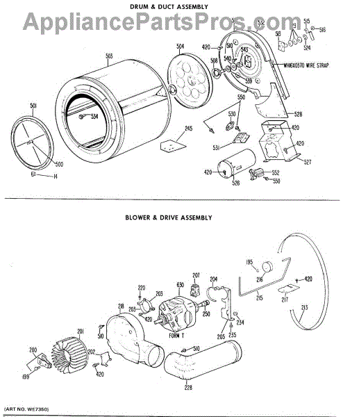 The Blower Wheel is an OEM replacement part for GE dryers. It has a role in the air circulation within the dryer, aiding in the even and efficient drying of clothes. The blower wheel, connected to the motor, helps in expelling the moist air out of the dryer through the exhaust vent during the drying cycle. Causes of a malfunctioning blower wheel are typically wear and tear from regular use, the accumulation of lint or debris, or damage to the wheel’s fins or central hub, which can impact its rotation and air circulation capability. Symptoms of a bad Blower Wheel include: