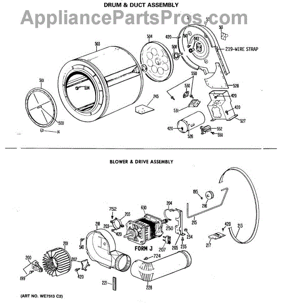 Parts for Ge DDG7289RBLWW: 03 - Drum & Duct Assembly Parts