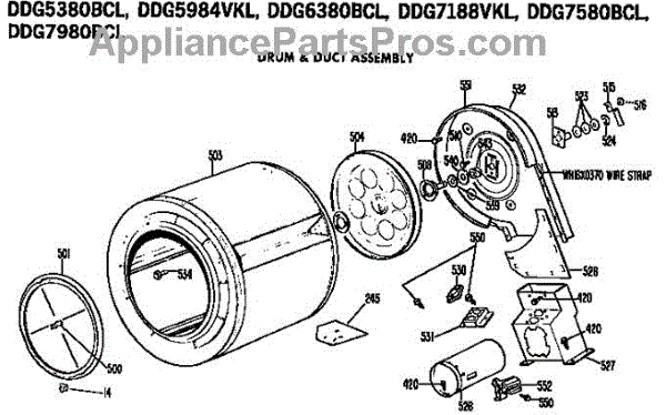 Parts for Ge DDG7980BCL: Drum And Duct Assembly Parts