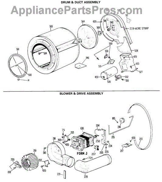 Parts for Ge DDG7986RAL: 03 - Drum & Duct Assembly Parts