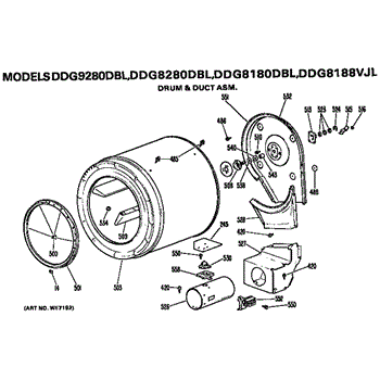 Parts for Ge DDG8180DBL: Drum And Duct Assembly Parts