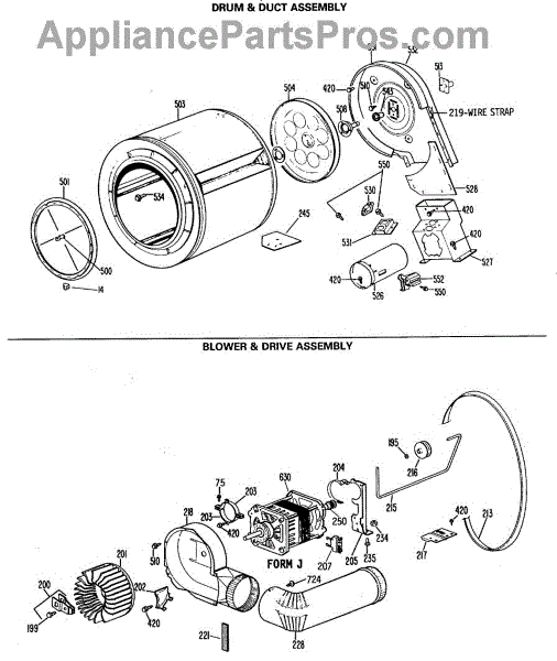 Parts for Ge DRL1555RAL: 03 - Drum & Duct Assembly Parts