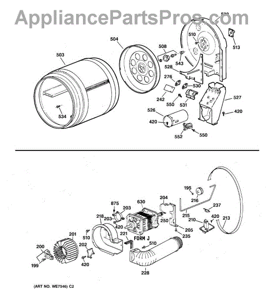 The Blower Wheel is an OEM replacement part for GE dryers. It has a role in the air circulation within the dryer, aiding in the even and efficient drying of clothes. The blower wheel, connected to the motor, helps in expelling the moist air out of the dryer through the exhaust vent during the drying cycle. Causes of a malfunctioning blower wheel are typically wear and tear from regular use, the accumulation of lint or debris, or damage to the wheel’s fins or central hub, which can impact its rotation and air circulation capability. Symptoms of a bad Blower Wheel include: