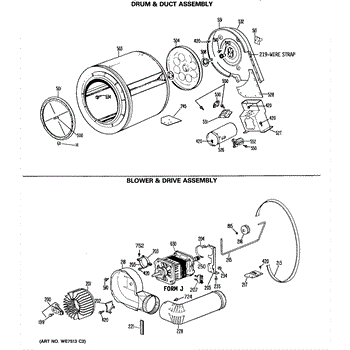 The Blower Wheel is an OEM replacement part for GE dryers. It has a role in the air circulation within the dryer, aiding in the even and efficient drying of clothes. The blower wheel, connected to the motor, helps in expelling the moist air out of the dryer through the exhaust vent during the drying cycle. Causes of a malfunctioning blower wheel are typically wear and tear from regular use, the accumulation of lint or debris, or damage to the wheel’s fins or central hub, which can impact its rotation and air circulation capability. Symptoms of a bad Blower Wheel include: