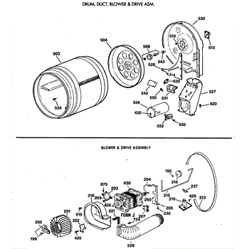 Parts for Ge DWLR473GT0AA: 02 - Drum, Duct, Blower & Drive Asm. Parts