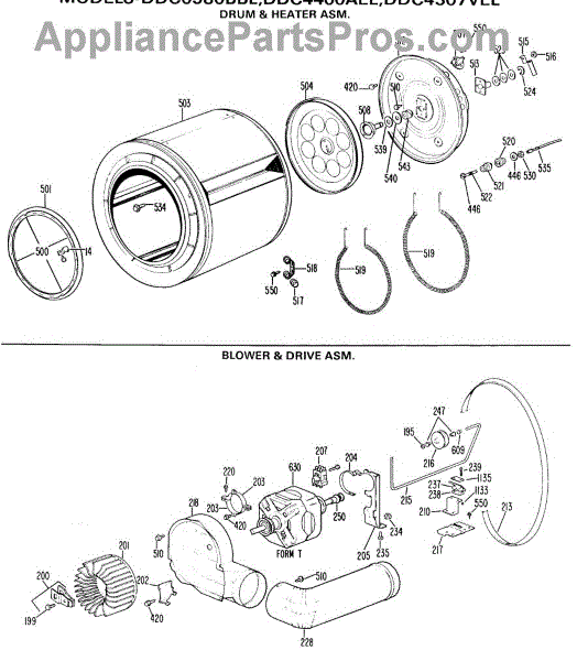 Parts for Ge DDC4400AEL: 05 - Drum & Heater Asm. Parts