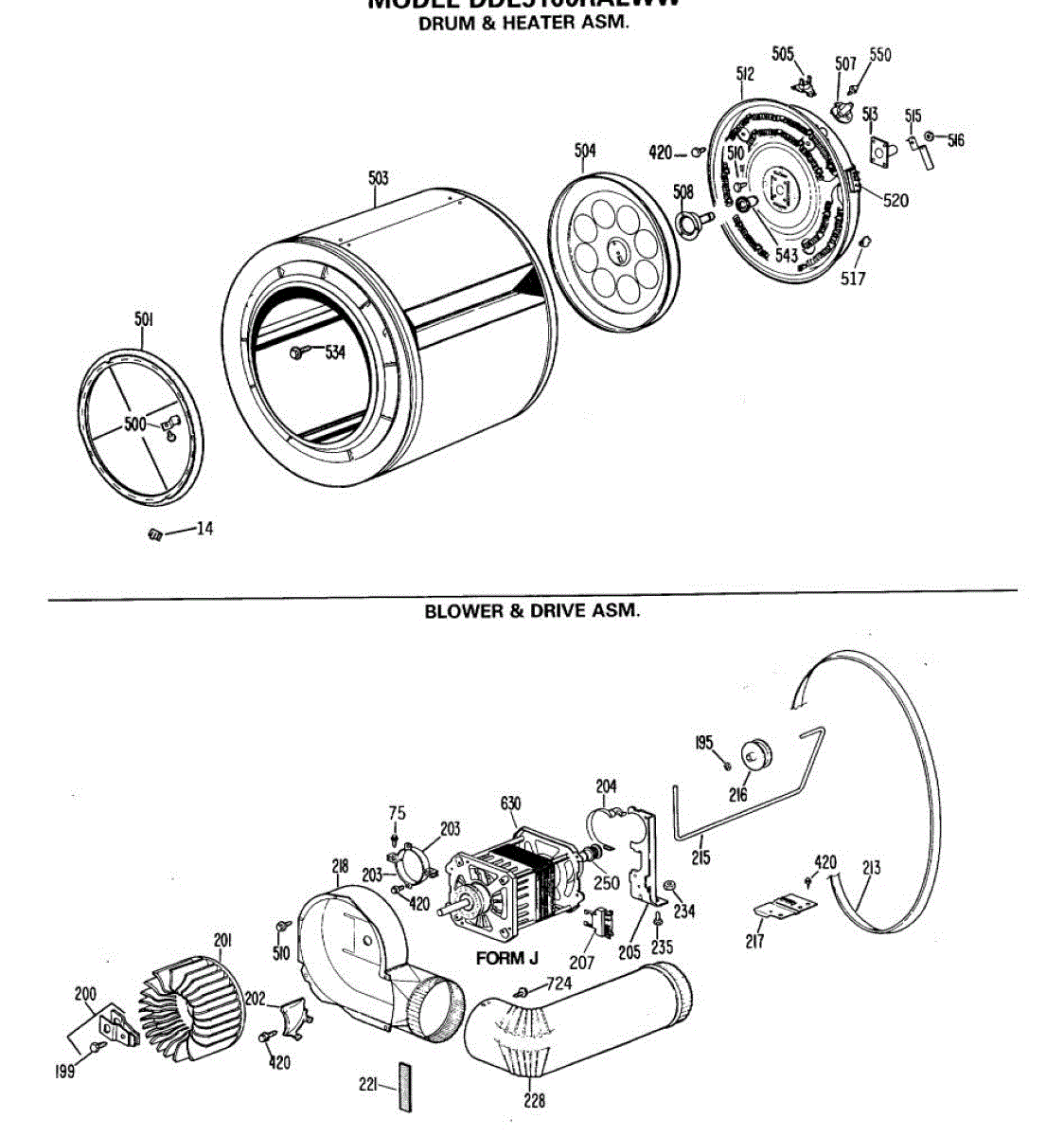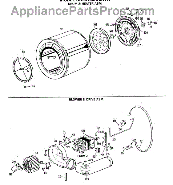 Parts for Ge DDE5100RALWW: 04 - Drum & Heater Asm. Parts