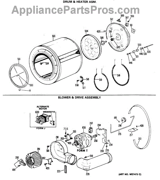 This dryer heating element kit is made by GE and includes two coils and hardware. Rated 240 volts.