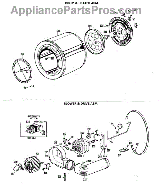 Parts for Ge DRB2455MCL: 04 - Drum & Heater Asm. Parts