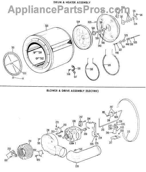 This dryer heating element kit is made by GE and includes two coils and hardware. Rated 240 volts.