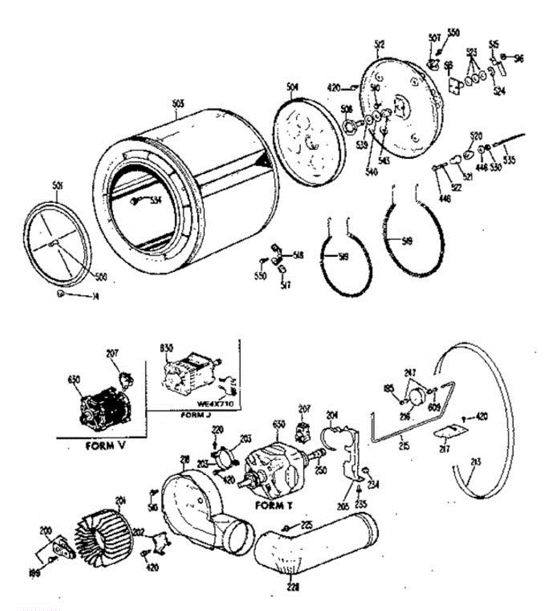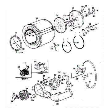 Parts for Ge DDE058DGAL: Drum, Heater, Blower & Drive Assembly Parts