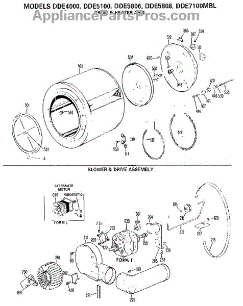 Parts for Ge DDE4000: Drum / Heater / Blower And Drive Parts