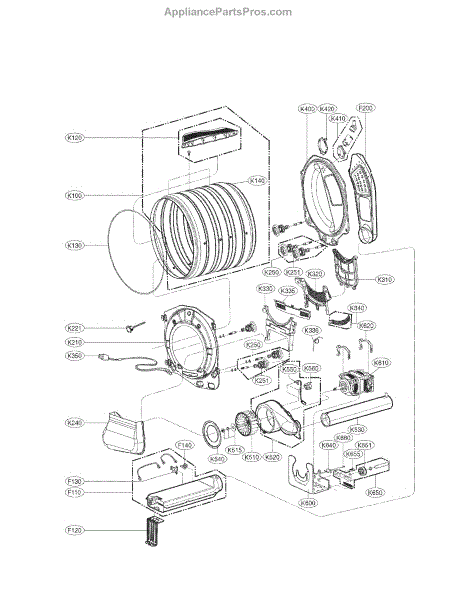 Blower housing assembly for dryer that channels heated air from the drum to the exhaust. Replaces a cracked or damaged housing to restore proper airflow and help the dryer dry more efficiently and quietly. What it does:
