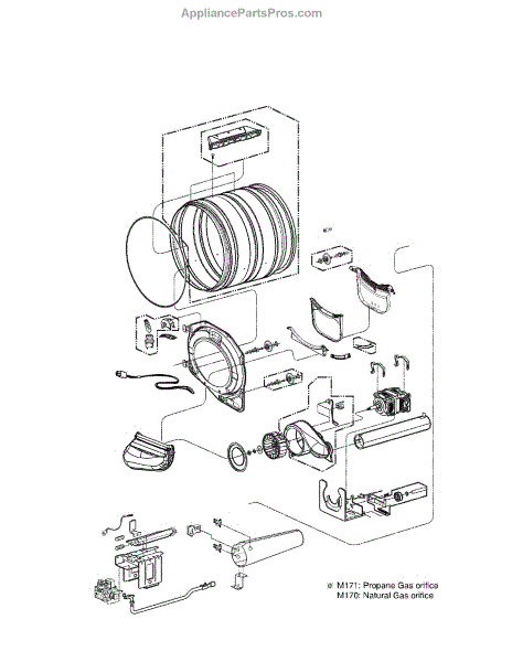 The Liquid Propane Gas Orifice is an OEM replacement part for LG dryers. This orifice is specifically designed for models that run on liquid propane gas. It regulates the flow of gas into the burner, allowing the dryer to heat up and dry your clothes. Causes of a faulty orifice can include corrosion from repeated heating cycles breaking down internal components. Orifices degrade naturally over extended use. Symptoms of a failed orifice include:
