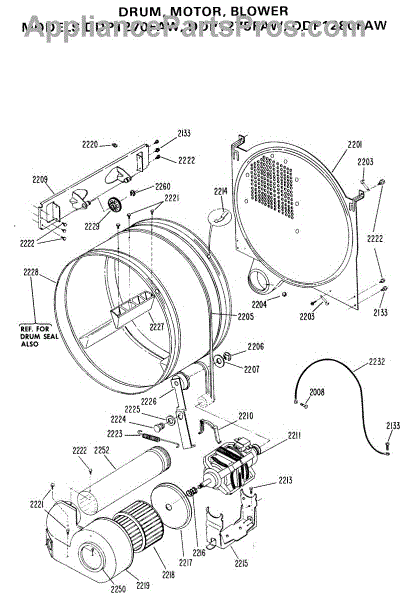Parts for Ge DDP1270FAW: 02 - Drum, Motor, Blower Parts