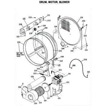 Parts for Ge DDP1270GBE: 02 - Drum, Motor, Blower Parts
