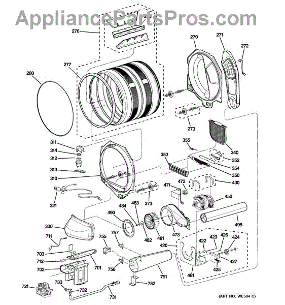 This drum support roller assembly is a genuine General Electric part, sold individually. It can be used as a replacement part for a dryer. This drum support roller assembly bolsters the placement of the drum in the cabinet as it rotates through a standard laundry cycle.A drum support roller assembly might have to be ordered as a complete replacement for the drum support rollers of a dryer. The primary symptom of a drum support roller that has to be replaced is a particularly or unusually noisy laundry cycle with squeaks coming from the area of the drum support rollers. If this occurs, perform a visual inspection of the drum support rollers. If there appear to be signs of visible damage including punctures, erosion, or warping to the part as a result of an accident or due to standard wear from long-term usage, the component should be removed and replaced by this genuine OEM replacement part.This is an OEM part sourced directly from the manufacturer. It is sold individually. This drum support roller assembly is compatible with General Electric brand dryers.