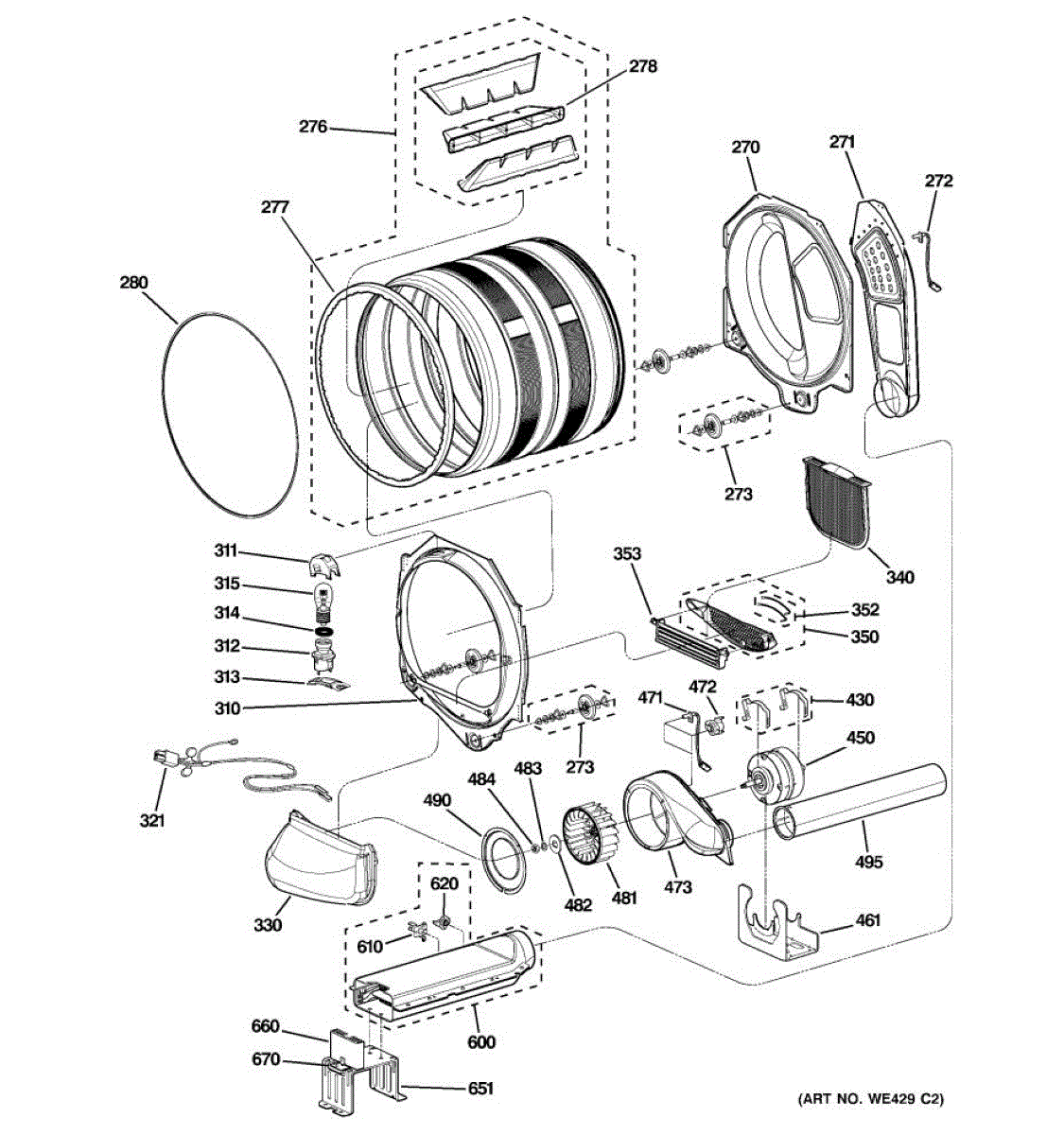 Dryer door gasket seal creates an airtight barrier to prevent heat loss and improve efficiency. Replace if worn, cracked, or causing poor drying. Verify fit with your model number.