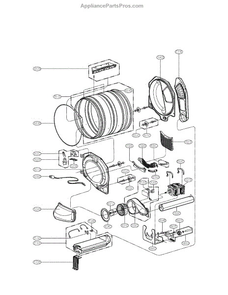 The Blower Wheel is an OEM part for LG dryers. This part circulates air through the dryer drum and out the exhaust vent, ensuring proper airflow for efficient drying of clothes.