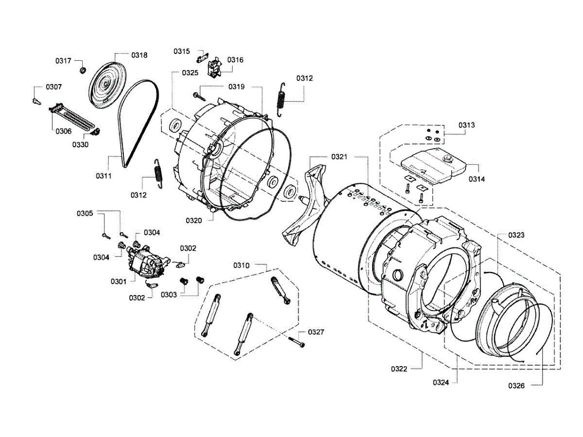 Replacement rear tub assembly for your washer. This structural component houses the drum and bearings. Order a new one if your original is cracked or damaged.
