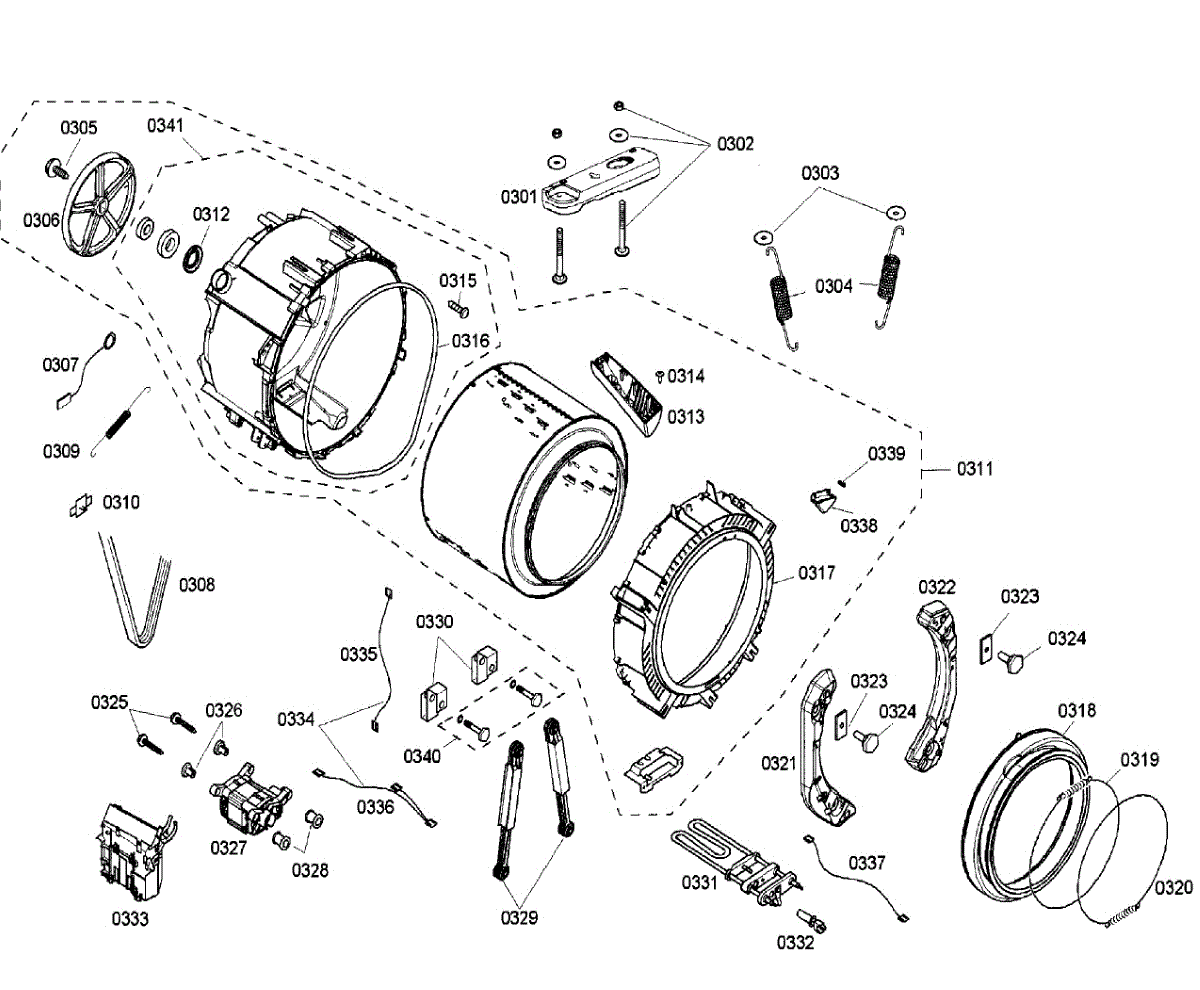 The Tank Spring is an OEM part for Bosch washing machines. It is located within the central support assembly below the washer tub. The spring provides counterbalancing tension to assist the tub during movement and rotation.